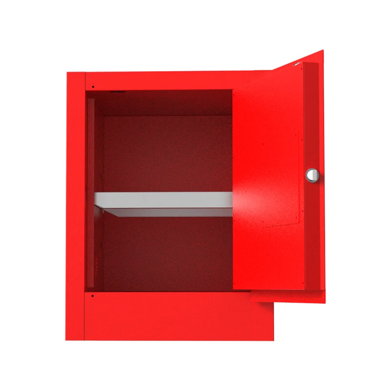 दहनशील रासायनिक सुरक्षा भंडारण कैबिनेट का निर्माण डबल-लेयर स्टील प्लेट संरचना के साथ किया गया है, जो कैबिनेट बॉडी की ताकत और स्थिरता को काफी बढ़ाता है। औद्योगिक उत्पादन में, जब बार-बार संभालने और टकराव का सामना करना पड़ता है, तो यह अंदर संग्रहीत ज्वलनशील रसायनों के लिए विश्वसनीय भौतिक सुरक्षा प्रदान कर सकता है, जिससे कैबिनेट क्षति के कारण ज्वलनशील वस्तुओं के रिसाव से होने वाले संभावित खतरों को रोका जा सकता है। यह रासायनिक कच्चे माल के गोदामों जैसे स्थानों के लिए उपयुक्त है।